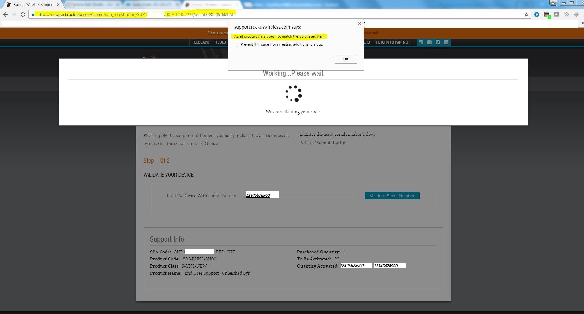 If the error Asset product class does not match the purchased item appears during unleashed support activation, please contact Ruckus SupportResolution